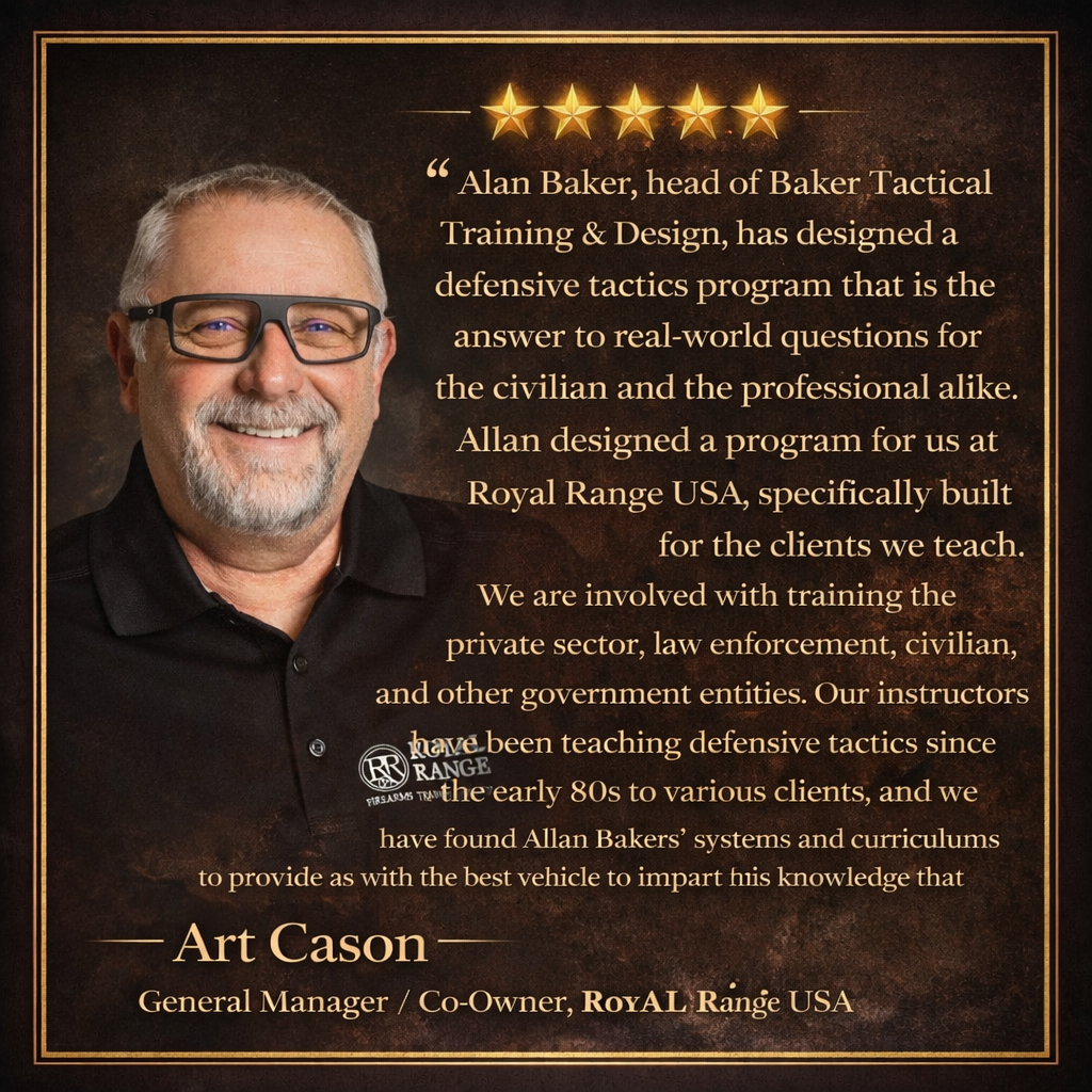 Professor Alan Baker is a high-performance coach and an internationally recognized martial arts & self-defense expert. He has over 45 years of continuous experience in the arts. He has been training continuously in the fitness and Martial Arts field since 1981 and has been teaching professionally since 1990. Baker founded the Civilian Tactical Training Association in 2015 and continues establishing C-Tac® instructors today.